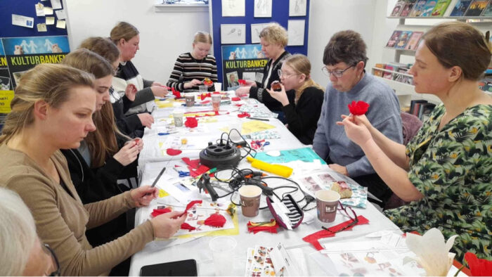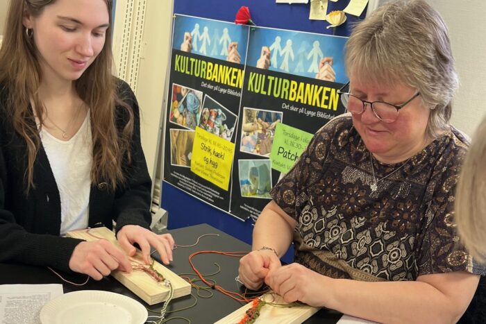 Knytning til “kreasøndag” hos Kulturbanken på Lynge Bibliotek. Foto: Charlotte Bjørlig.